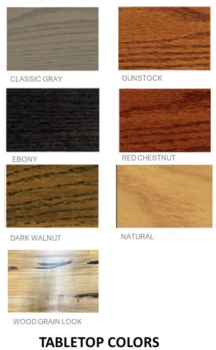 It can be made in a variety of colors. It is pictured with the barrel and top are stained oak. It is treated to go inside or out.
