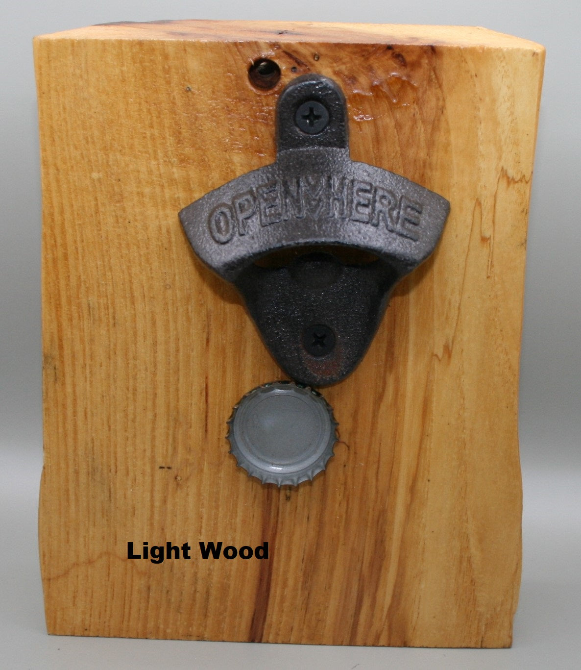 The opener is made from live edge wood with a 3" magnet inside to catch bottle caps.